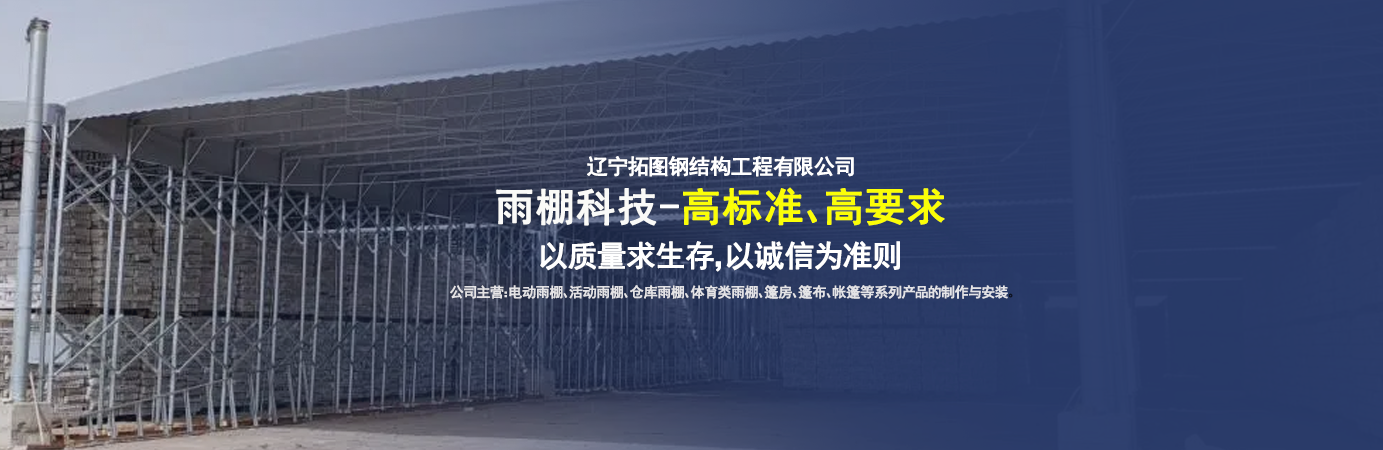遼寧拓圖鋼結(jié)構(gòu)工程有限公司是一家專業(yè)從事推拉篷設(shè)計(jì)、制作、安裝、使用、維修的綜合性公司。公司主營:電動(dòng)雨棚、活動(dòng)雨棚、倉庫雨棚、體育類雨棚、篷房、篷布、帳篷等系列產(chǎn)品的制作與安裝。 遼寧拓圖鋼結(jié)構(gòu)工程有限公司堅(jiān)持以市場為導(dǎo)向,以科技創(chuàng)新為動(dòng)力,以質(zhì)量求生存,以誠信為準(zhǔn)則,倡導(dǎo)求實(shí)、進(jìn)取、創(chuàng)新的企業(yè)精神。“科學(xué)的管理、嚴(yán)謹(jǐn)?shù)脑O(shè)計(jì)、 的制作安裝、嚴(yán)格的質(zhì)量檢測、良好的后期服務(wù)成就企業(yè)的信譽(yù),為您提供優(yōu)質(zhì)服務(wù)。 遼寧拓圖鋼結(jié)構(gòu)工程有限公司傾力于開發(fā)應(yīng)用三維空間結(jié)構(gòu)與新材料的結(jié)合,將廣告藝術(shù)視覺表現(xiàn)形式與張力膜材科學(xué)的結(jié)合,推出多彩推拉蓬,依靠先進(jìn)的科學(xué)技術(shù),將推拉蓬建筑表現(xiàn)形式無限延伸,立志走在建筑科學(xué)的前沿,引導(dǎo)建筑時(shí)尚潮流,我們的目標(biāo)是使推拉蓬建筑在中國發(fā)展壯大。 遼寧拓圖鋼結(jié)構(gòu)工程有限公司憑著極強(qiáng)的事業(yè)熱情和豐富的專業(yè)經(jīng)驗(yàn)以“勤勉進(jìn)取、銳意創(chuàng)新、至誠至信”的精神使公司得到迅速健康發(fā)展,業(yè)務(wù)范圍遍及全國。科學(xué)的管理、嚴(yán)謹(jǐn)?shù)脑O(shè)計(jì)、高標(biāo)準(zhǔn)的制作安裝流程,嚴(yán)格把控產(chǎn)品質(zhì)量,熱誠的售后服務(wù)是企業(yè)競爭力的源泉。 遼寧拓圖鋼結(jié)構(gòu)工程有限公司人愿以最誠摯的態(tài)度,歡迎廣大客戶的蒞臨與溝通!愿為市場提供優(yōu)...